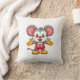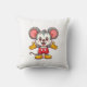 Dit afbeelding shows een schattige cartoon muiskarakter met grote ronde oren, het dragen van rode korte broek met twee witte knoppen, gele handschoenen, en gele schoenen.