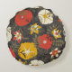 cartoons bladeren en bloemen op een donkere achter rond kussen