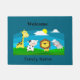 Giraffe, koe, geit en leeuw die op een prachtige zonnige dag 100% aan het groene gras hangen. Klik op de knop AANPASSEN om een van de lettertypen of afbeeldingen toe te voegen, te verplaatsen, te verwijderen, te wijzigen of te wijzigen.