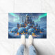 Welcome doormat of an impressive castle made of igloos and stone, in a winter landscape of snow and pine trees. Magical aurora lights play in the evenfall sky, bathing the mountains and valley in a surreal atmosphere of heavenly colors. Amidst the misty strands of cold and snow, the stronghold castle known as "Winter Fire" stands. It is the last bastion of civilization and warmth before a vast expanse of frozen tundras, snowcapped mountains, and haunted forests open themselves to the wanderlust of the willing traveler... This artwork was created with ImageFX and upscaled with Leonardo.ai. Additional editing was done offline by me.