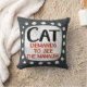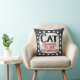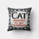 Een schattig en grappig typografisch dierenontwerp met de tekst "Cat Demands To See The Manager". Het beschikt over zwarte en rode tekst op een witte rechthoek met funky, speelse witte stippen eromheen, allemaal op een grijze achtergrond.