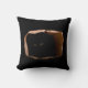 Black Cat Hiding in de schaduw van een papieren tas, op zwarte achtergrond - een roekeloze, grappige en zeer coole toevoeging onder je andere fancy kussens!