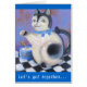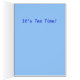 Blauw wenskaart met de afdruk van het schilderij " kat theepot" en tekst: "Laten we samen... Het is Tea time."