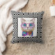 Een schattig kussen voor elke katten- of dierenliefhebber! Kat met een crème met een crème met een trendy zwarte en witte dampplank.