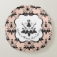 Dit ronde kussen is versierd met damast uiterlijk met een lineair kattenmotief in een ontspannen pose, omringd door kattenblad en bloemetjes in zwart silhouet. Pas de achtergrondkleur eenvoudig aan uw interieur aan.