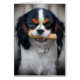 De schattige Cavalier King CharlesSpaniel houdt een grote hondenkoekje in zijn mond op dit soort van vriendelijk wenskaart.
