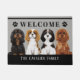 Cute doormat met illustratie van de Cavalier King Charles Spaniels. achtergrondkleur en teksten. Ideaal geschenk voor het hondenliefhebber of Cavalier King Charles Spaniel eigenaar.