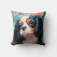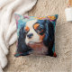 Een close-up portret van een driekleurige Cavalier King Charles Spaniel puppy, weergegeven in een schilderachtige stijl. De hond heeft een witte, zwarte en bruine vacht, met grote, expressieve bruine ogen. Het is omgeven door een overvloed aan kleurrijke bloemen, waardoor een zachte en romantische sfeer ontstaat. De vacht van de hond wordt met nauwgezette details afgebeeld, waarbij de textuur en stroom van zijn lange, zijdeachtige haar wordt vastgelegd. Perfect cadeau voor cavie liefhebbers.