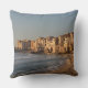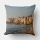Foto's gooien het kussen met de typische architectuur van de oude huizen op het strand van het Middellandse-Zeegebied in de stad Cefalu, op het Italiaanse eiland Sicilië.