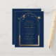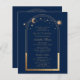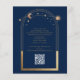 Celestial Blue Gold QR Code Quinceañera Invitations beschikt over een sierlijke gouden zon, maan en sterrenhemel met een gouden lijst op een blauwe achtergrond. Binnen is uw aangepaste Quinceañera uitnodiging informatie. Voeg op de keerzijde extra informatie toe zoals uw Quinceañera website en QR code. Personaliseer door de tekst in de tekstvakken te bewerken. Ontworpen voor u door Evco Studio www.zazzle.com/store/evcostudio