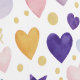 This whimsical seamless pattern expands the collection's horizon by introducing watercolor stars alongside the classic hand-painted hearts. The palette is a vibrant mix of deep plum, teal, and amber, softened by delicate blush and lilac tones. The design retains the signature gold botanical leaf sprigs and hollow gold-outlined hearts while adding bold gold glitter stars and dots. Set against a clean white background, this pattern is perfect for magical nursery themes, playful kids' apparel, or creative scrapbooking projects.