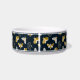 Boho Navy Blue en Gold Moths Gepersonaliseerde Pet Bowls met Naam Sjabloon: Stijlvol, Trendy en Schattig! Onze op maat gemaakte schalen hebben een mottendoedelpatroon in marineblauw, geel, goud en wit, perfect voor zowel katten als honden. Personaliseer met de naam van je huisdier voor een unieke touch. Deze preppy en stijlvolle kommen voegen charme toe aan maaltijden, het vieren van de vreugde die huisdieren brengen. Maak maaltijden heerlijk met onze aangepaste en stijlvolle huisdierkommen.
