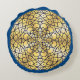 Een toonaangevende concentrische cirkel mandala in donkerblauw met felblauwe en gouden sterachtige stippen die tussen de lagen zijn gespoten en een felle zonnige gradiëntcirkel erachter zorgt voor een leuk ontwerp dat de sterrenhemel en een zonnige zonnige dag met één afbeelding doet denken.