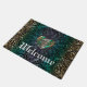 Celtic Heart Mandala in Green en Gold Original Doormat. Een goudvormig Keltisch Heart Knot in een kleurrijke metalen mix van groen, goud en paars in het midden van een groen, blauw, lavender en goudmandala boven zwart, wit of metallisch groen. Celtische knopen zijn een traditionele Keltische kunstvorm, met name gekenmerkt door het feit dat ze geen begin en geen einde hebben, die de eeuwige liefde en de eindeloze levenscyclus symboliseren. Ze zijn een favoriet symbool geworden in veel culturen en beschavingen over de hele wereld en met veel toverbeoefenaars van magie of mystiek vandaag de dag. De Keltische Heart-knoop is een eindeloze knoop in de vorm van een hart en vertegenwoordigt eeuwige en eindeloze romantische liefde.