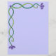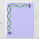 Dit briefpapier heeft het ontwerp van de aan- en linkerzijde van de wijnstok met paarse bloemen. De achtergrondkleur kan worden gewijzigd.