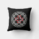 Een werpkussens met een Keltische knoop met een rood vierkant kruis in het midden.