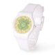 Deze klassieke klavertjevier bedekt een concentrisch cirkelontwerp met lagen Keltische weefsels in meerdere tinten groen met een beetje sinaasappel voor accent. Dit horloge is verkrijgbaar in verschillende kleuren, stijlen en maten, waaronder maten voor zowel kinderen als volwassenen.