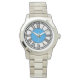Brattleboro's Center Congregational Church is een icoon op Main Street en de klok in de toren wordt door mensen in Brattleboro gebruikt om nauwkeurige tijd te vertellen. Het is onlangs gerestaureerd. Dit horloge viert de wijzerplaat van de Center Church. Het is een knalblauw middenstuk van glas in lood.