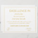 Gepersonaliseerd wit en goud Certificaat van uitmuntendheid in het Engels Achievement Award