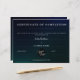 Modern moiré-effect mannelijk en stijlvol certificaat van voltooiing. Kleuren: zwart, marineblauw, turkoois. Zorg ervoor dat u schrijft met een witte of zilveren pen als u met de hand schrijft.