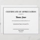 Dit is een sjabloon voor een 'certificate of appreciation'. Het bevat tekst die u kunt bewerken om de naam van de ontvanger te shows in een elegant script. U kunt ook de andere tekst bewerken om de prijs aan te passen voor uw gelegenheid en organisatie. Er is een regel voor degene die de prijs geeft om aan te melden. Je kunt ook de naam en titel van die persoon onder de regel laten drukken. Het papier is wit. De tekst is zwart.