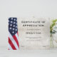 Certificaat van waardering van de veteraan
