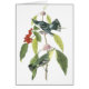Deze afdruk is van een paar Cerulean Warblers. Het zijn blauw grijze vogels met donkerdere markeringen in hun vleugels en staart. In deze druk zijn twee mannetjes die op een boomtak met rode bessen worden aangebracht.