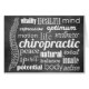 Deze lege groet-/notitiekaarten voorzien van een collage van chiropractische woorden en van de hand getrokken logo van de wervelkolom op een krijtborduiterlijk achtergrond.