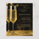 Elegant invitation to a Champagne Brunch Bridal Shower. Features Champagne glasses and gold glitter on a dramatic black background. Personalized with shower details on the front and Bride's registry information on the back.