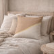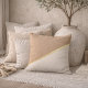 Beach neutral design in taupe and beige featuring a clean two tone split base with a diagonal champagne metallic print stripe and soft linen effect detail. Refined coastal styling for layered sofas, neutral bedrooms, and light wood interiors seeking balanced contrast.