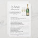 Waterverf elegante champagnefles met twee glaasjes champagne en tekst "Pop de champagne. Ze verandert haar naam."