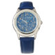Kinder’ roestvrijstalen blauw lederen bandhorloge met een afbeelding van zilveren droedels en verlichte zilveren menorah’s op blauw. Zie bijpassende ronde charme en ronde basic knop sleutelhanger. Zie het gehele Chanoeka Watch collectie onder de categorie ACCESSOIRES in de sectie FEESTDAGEN.