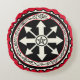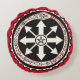 Rondwerpkussen met VooDoo-symbolen, in rood en zwart. Zeer uniek!