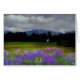Dusk op de Franconia Range in de White Mountains of New Hampshire. Kleurmontage van een lupveld voor het Franconia Range in Sugar Hill New Hampshire. De montage bevat elementen van zowel fotografie als schilderij van de waterverf.