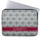 Charcoal White Moroccan #6 Burgundy Name Monogram Laptop Sleeve