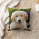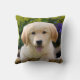 Een schattige jonge puppy-eyed Golden Retriever-hond portretteert tussen bloemen in een tuin. Deze vingerafdruk van de petfotostof op een glad vierkant polyester goot kussen is een aantrekkelijk geschenk voor doglovers. Een jonge goudpuppy, gefotografeerd door Katho Menden. http://www.zazzle.com/kathom_photo