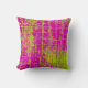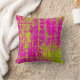 Een rijke textuur, abstract in schoppen van gechartreuzel, olijfgroen, frambozen, roze en fuchsia maakt dit tot een oogstende gooikussens.