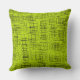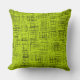 Dit moderne kussen heeft een abstract patroon op een chartreuse achtergrond.