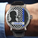 Checkerboard Racing Flag Blauwe lijn Race Foto Horloge