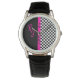 Checkerboard Racing Flag Roze Lijn Aangepaste Naam Horloge