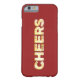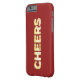 Cheers die in gouden marquee zijn geschreven, accentueren dit iPhone 6/6's Hoesje op een rode kruis achtergrond, wat een feestelijk kerstcadeau maakt.