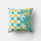 Cheques en Swirls in Turquoise, Geel en Wit Kussen