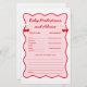 Maak je baby shower extra leuk met ons gepersonaliseerde Cherry Baby shower voorspellingen spel! Perfect voor baby shower games, dit heerlijke spel past prachtig bij het kersen baby shower thema. Vier het met het thema cherry on top baby shower en leg mooie herinneringen vast voor ons thema cherry on top baby shower. Een charmante toevoeging voor onze kleine kersen op top baby shower thema dat de gasten zullen houden!