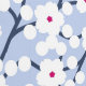 Uniek en opvallend wit kersenbloesem bloemenpatroon op een lichte poederblauwe achtergrond. Originele kunst van Nic Squirrell.