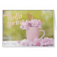 Schattig en bewerkbaar wenskaart met prachtige kroonbloesems in een mok, Hallo lentetekst en prachtig groen licht op de achtergrond. Borden voor papierbekers, wijnlabels, huwelijksuitnodigingen, sparen de datumuitnodigingen, richtingen, accommodatie- en informatiekaarten. Alles wat je nodig hebt voor je mooiste dag in het leven. Dit is het beste en Nummer 1-ontwerp voor uw speciale dag. uitnodiging voor romantische bruiloften. Creëer met Liefde door UtART