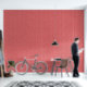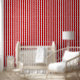 Een kersenrode en stoffige roze roos gelijkmatig gespreide strepen herhaal patroon behang. Het stoffige roze verzacht het rood, dus het is niet zo contrasterend en helder als het show naast wit.
