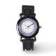 Paarse en zilvergrijze Chevron zigzagstijl horloge. Aanpassen met jouw naam. Dit voorbeeld leest Lillianna. Uniek ontworpen door Sarah Trett.