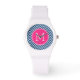 Chevron Pattern met monogram - magenta op de marin Horloge