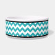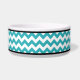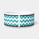 Stijlvolle schaal voor keramische honden, ontworpen met een turquoise & white chevron zigzag patroon en voorzien van de naam van uw huisdier.