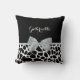 Een chique zwart-wit giraffe print gooi kussen met een elegant zilvergrijs lint vastgebonden in een vrouwelijke boog. Personaliseer dit meisjesachtige dierenprintontwerp door jouw naam toe te voegen. Vlak gedrukt afbeelding, niet daadwerkelijke boog.